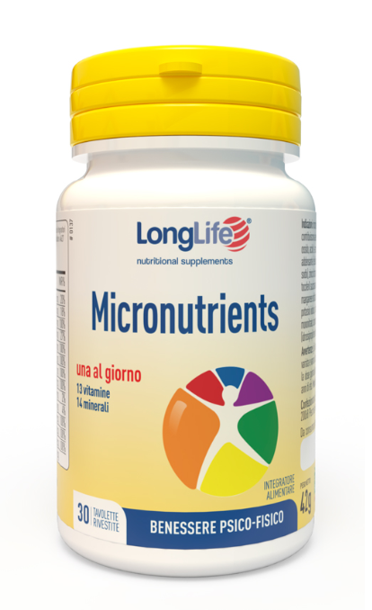 Efficace in caso di ridotto apporto con la dieta o di un aumentato fabbisogno, la supplementazione con Micronutrients è in grado di rispettare un adeguato piano d'integrazione finalizzato a mantenere il benessere psicofisico dell'organismo.