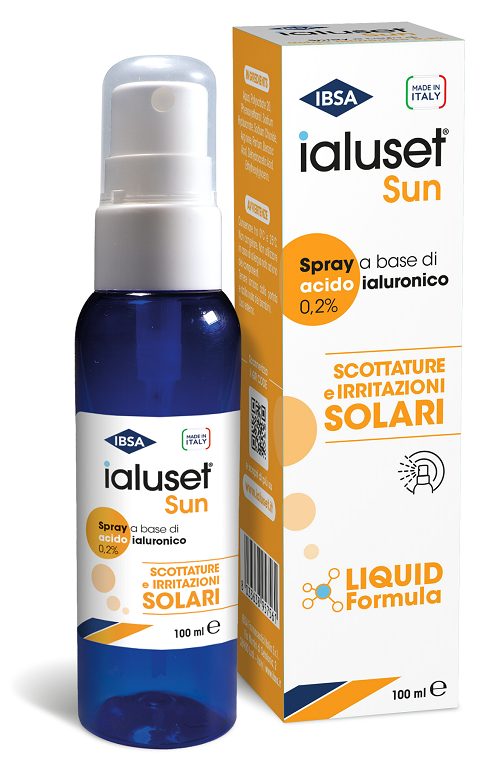 In caso di scottature solari, ialuset Sun, con acido ialuronico 2.000 ppm ad alta concentrazione