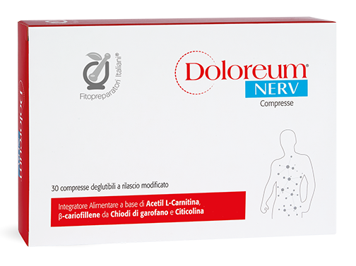 Doloreum Nerv è un Integratore Alimentare in compresse a rilascio modificato a base di Acetil L-Carnitina, β-cariofillene da Chiodi di garofano e Citicolina, utile per colmare le carenze di tali ingredienti.