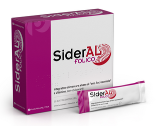 SiderAL® Folico 30mg è un complemento nutrizionale in pratiche bustine orosolubili, a base di Ferro Sucrosomiale®, vitamine (C, B12, B6 e D) e acido Quatrefolic®, la forma attiva dell’acido folico.