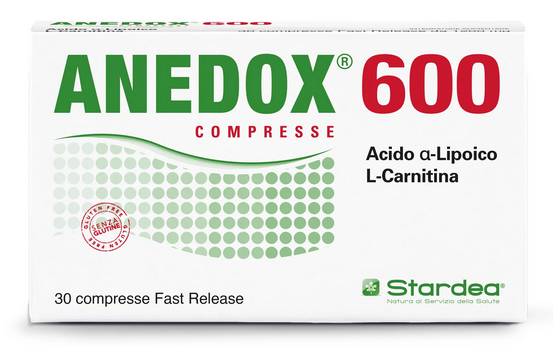 ANEDOX 600 è un integratore alimentare a base di Acido α-Lipoico (acido tiottico) a rilascio immediato, con L-Carnitina e Riboflavina che coadiuva il metabolismo energetico, il normale funzionamento dei nervi e contribuisce alla protezione delle cellule dallo stress ossidativo.