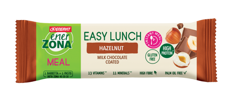 Ogni barretta Pasto Protein è accuratamente bilanciata 40-30-30*, così puoi concederti di rimanere sempre in Zona in modo pratico e veloce, per accompagnarti al meglio nelle tue giornate piene di impegni. Una barretta Pasto Protein equivale a un pasto**.