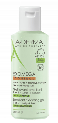 EXOMEGA CONTROL Gel Detergente Emolliente 2 in 1 Corpo e Capelli, lava, lenisce e protegge la pelle secca a tendenza atopica di neonati e bambini. Formula 2 in 1 per rendere morbida la pelle dei bambini. Schiuma vellutata, consistenza "non scivolosa", che si sciacqua facilmente. Senza sapone, pH fisiologico. Non brucia gli occhi. Formula biodegradabile per il rispetto dell'ambiente. Testato sotto controllo oftalmologico, dermatologico e pediatrico.