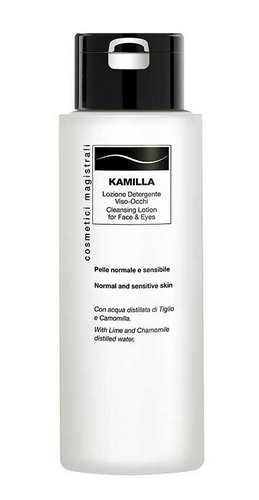 Lozione detergente viso-occhi senza risciacquo a base di acque distillate di camomilla e tiglio.